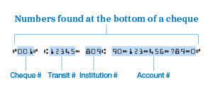 Your banking information is printed along the bottom of the cheque.